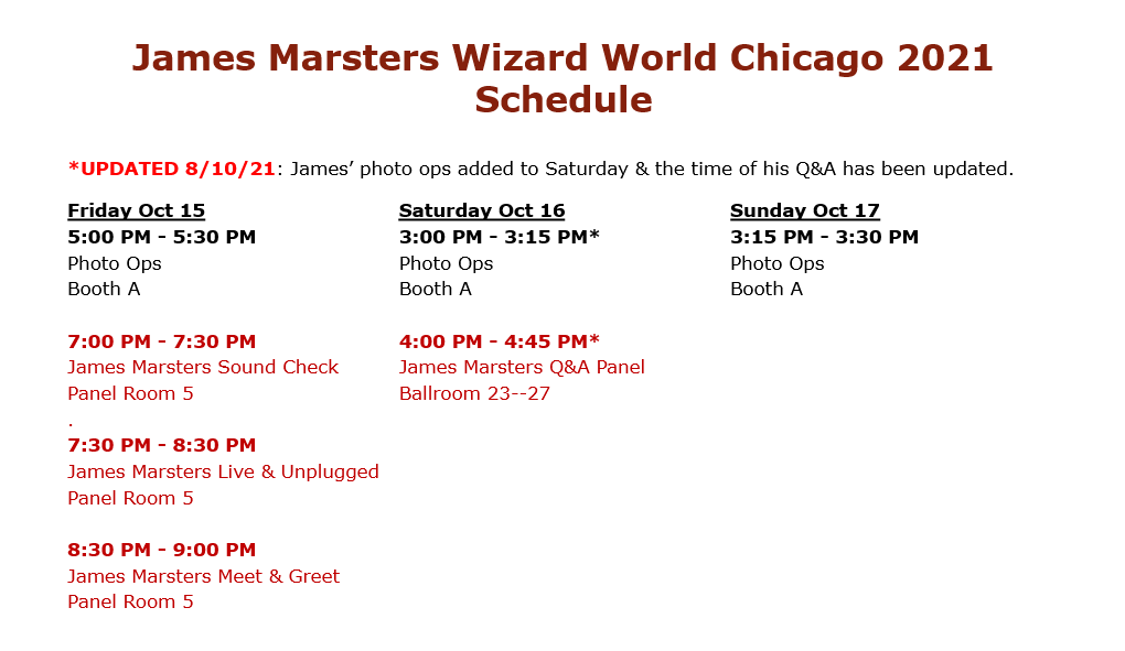 1 James Marsters Wizard World Chicago 2021 Schedule | @WizardWorld Previously announced details re James' attendance/Complete Schedule cast: james marstersevent: concertevent: wizard world chicago 2021james marsters